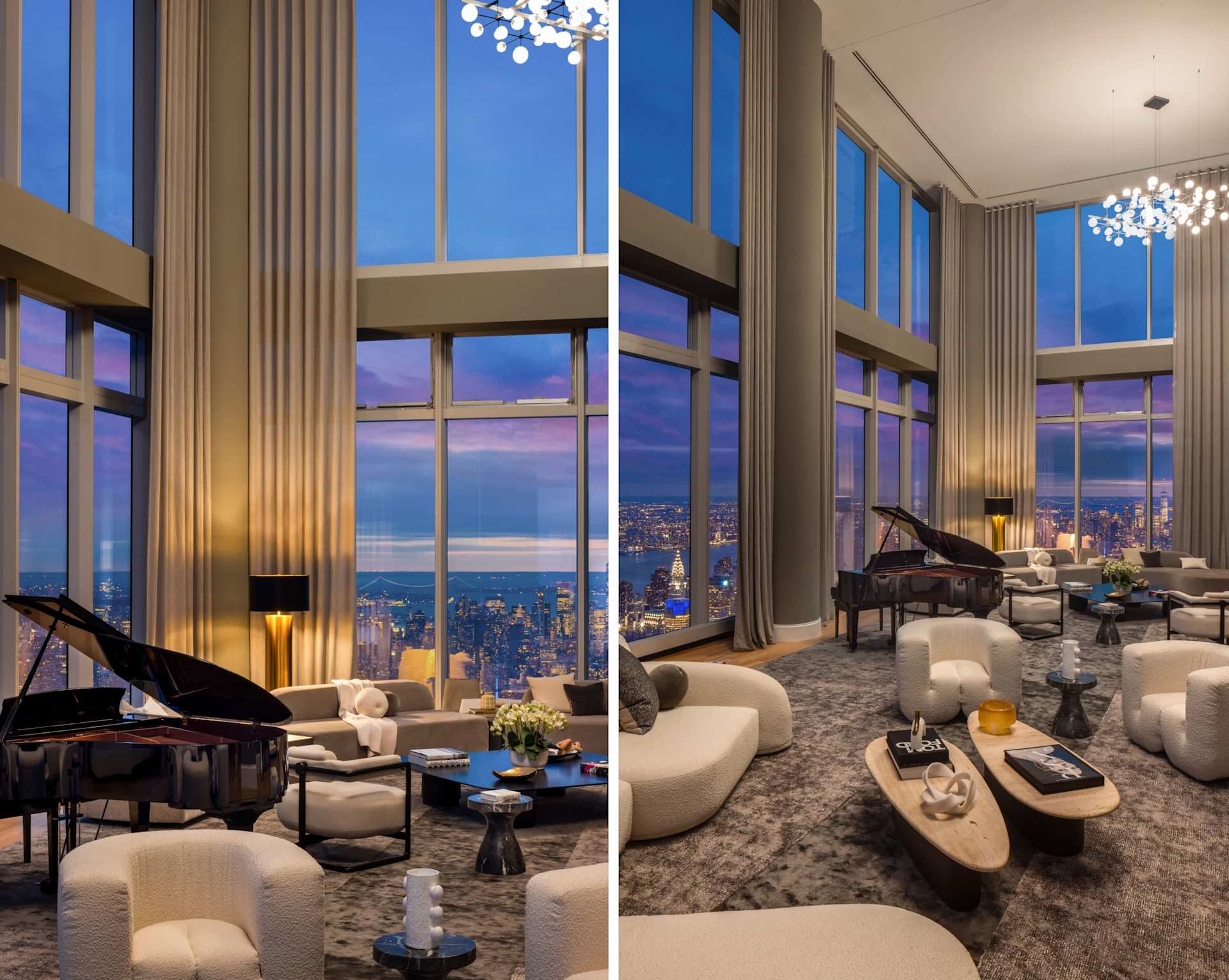 The event started in grand style at Central Park Tower's luxurious $250 million penthouse. The triplex penthouse at 217 W. 57th St. - the world's tallest residential condo tower, soaring 1,416 feet above the bustling streets, admiring uninterrupted, breathtaking views of Central Park and the picturesque cityscape from every angle; guests were effortlessly ascending above the rest of the supertalls on Billionaires' Row, including the prominent 432 Park.